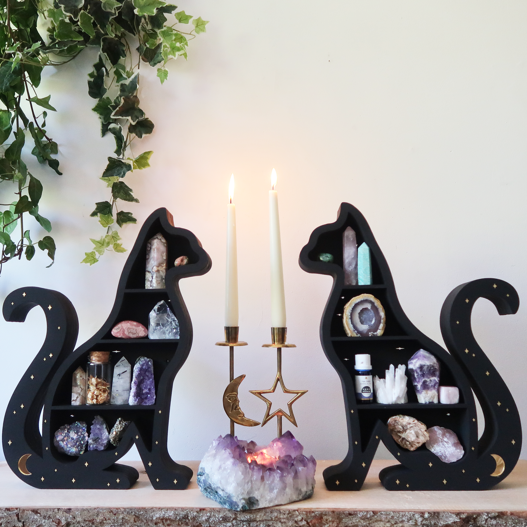 The Celestial Cat Crystal Shelf provides a beautiful way to incorporate black tourmaline into your pet's environment.