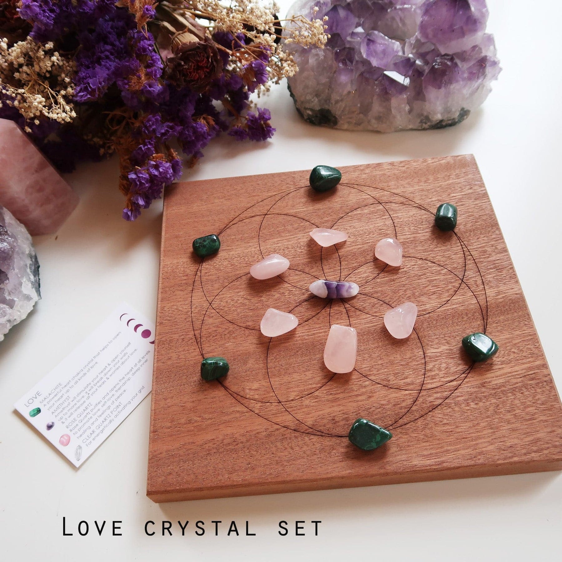 Our handcrafted Seed of Life Crystal Grid at Coppermoon is ideal for this purpose. The beautifully engraved geometric pattern provides the perfect foundation for your fertility-focused crystals.