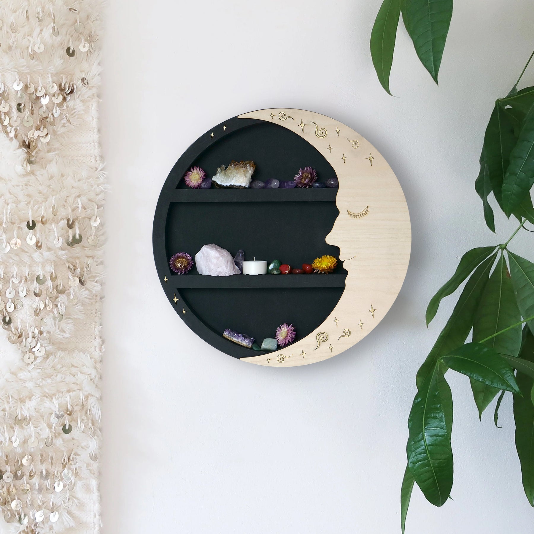 Our Dreamy Celestial Moon Shelf creates the perfect display space for your clear quartz and other dream stones.