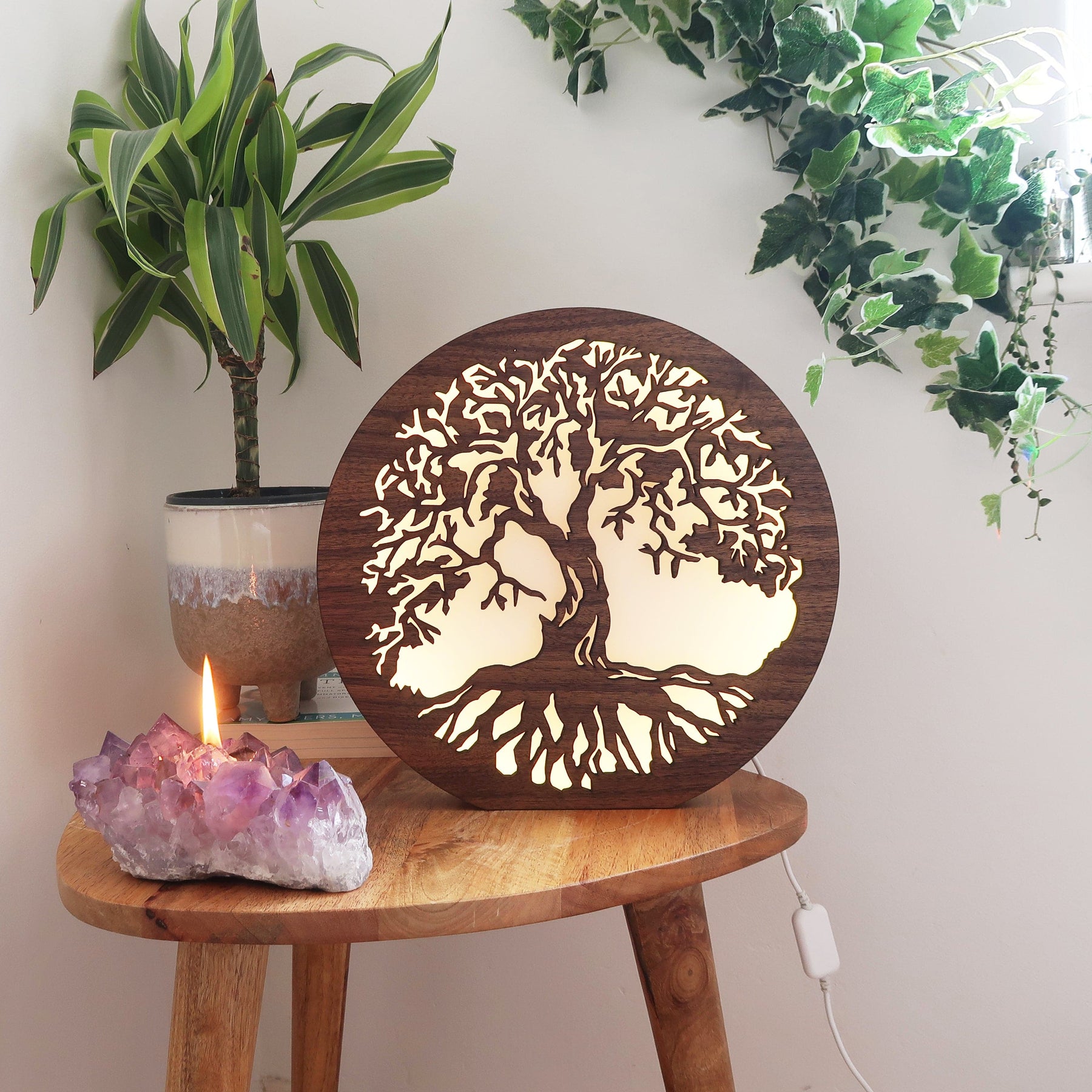 The Tree Of Life Table Lamp creates the perfect autumn ambiance for working with amethyst and other fall crystals.