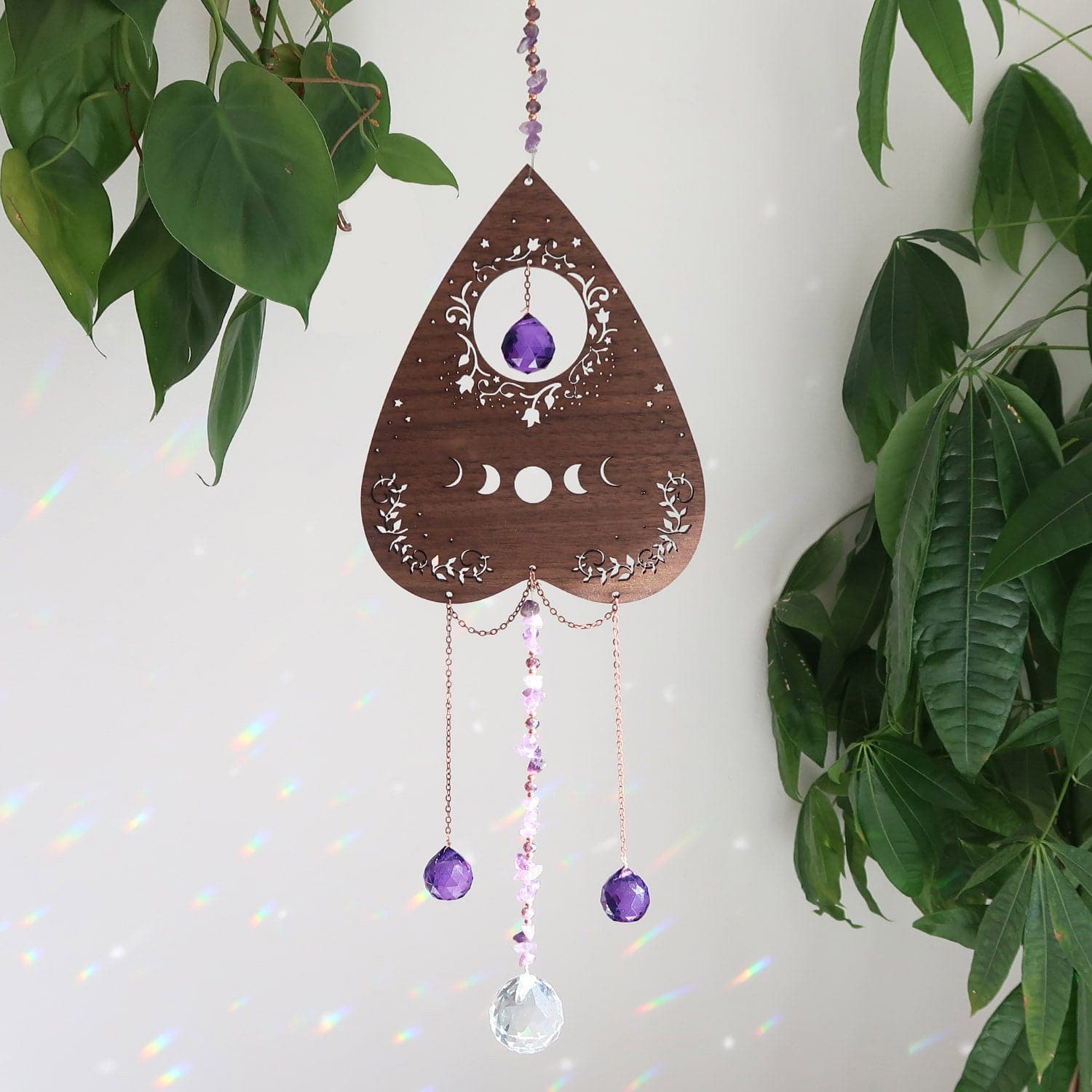 when sunlight hits the amethyst, it creates rainbow prisms throughout your space while maintaining the crystal's energetic charge.