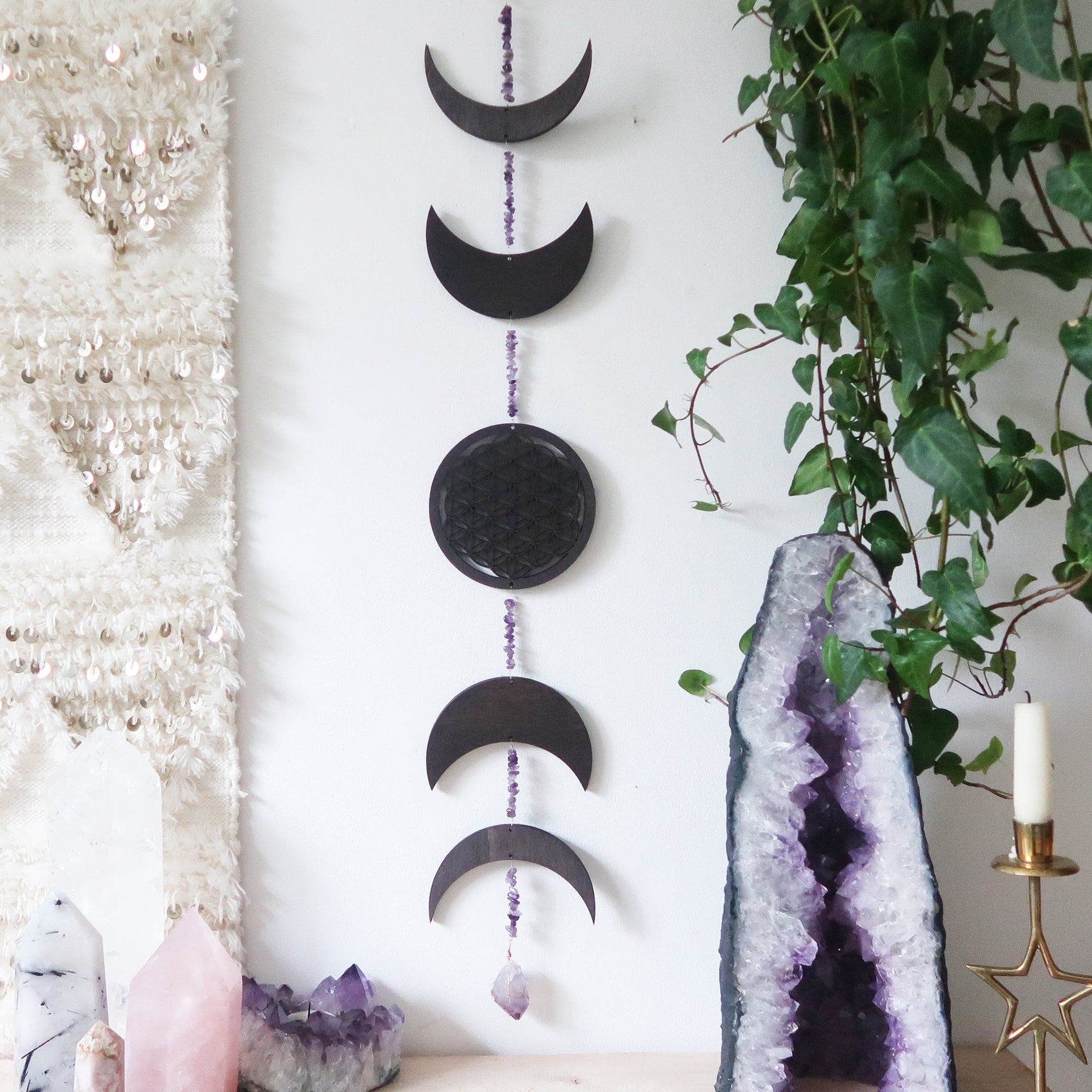 If you want to create something truly special, try placing your amethyst on our Dreamcatcher Moon Shelf with amethyst beads: