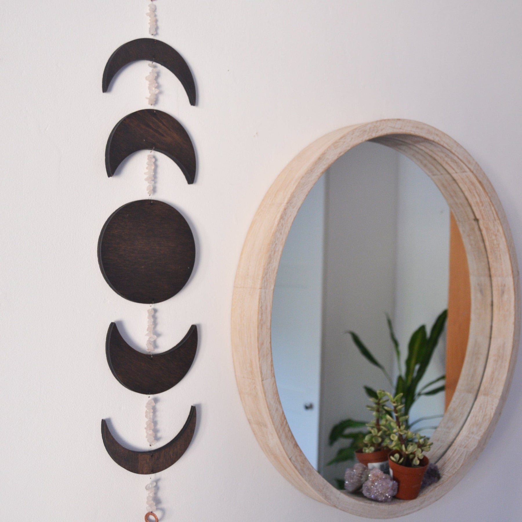 The Horizontal Moonphase Crystal Wall Art with Moonstone creates the perfect visual reminder for lunar timing.
