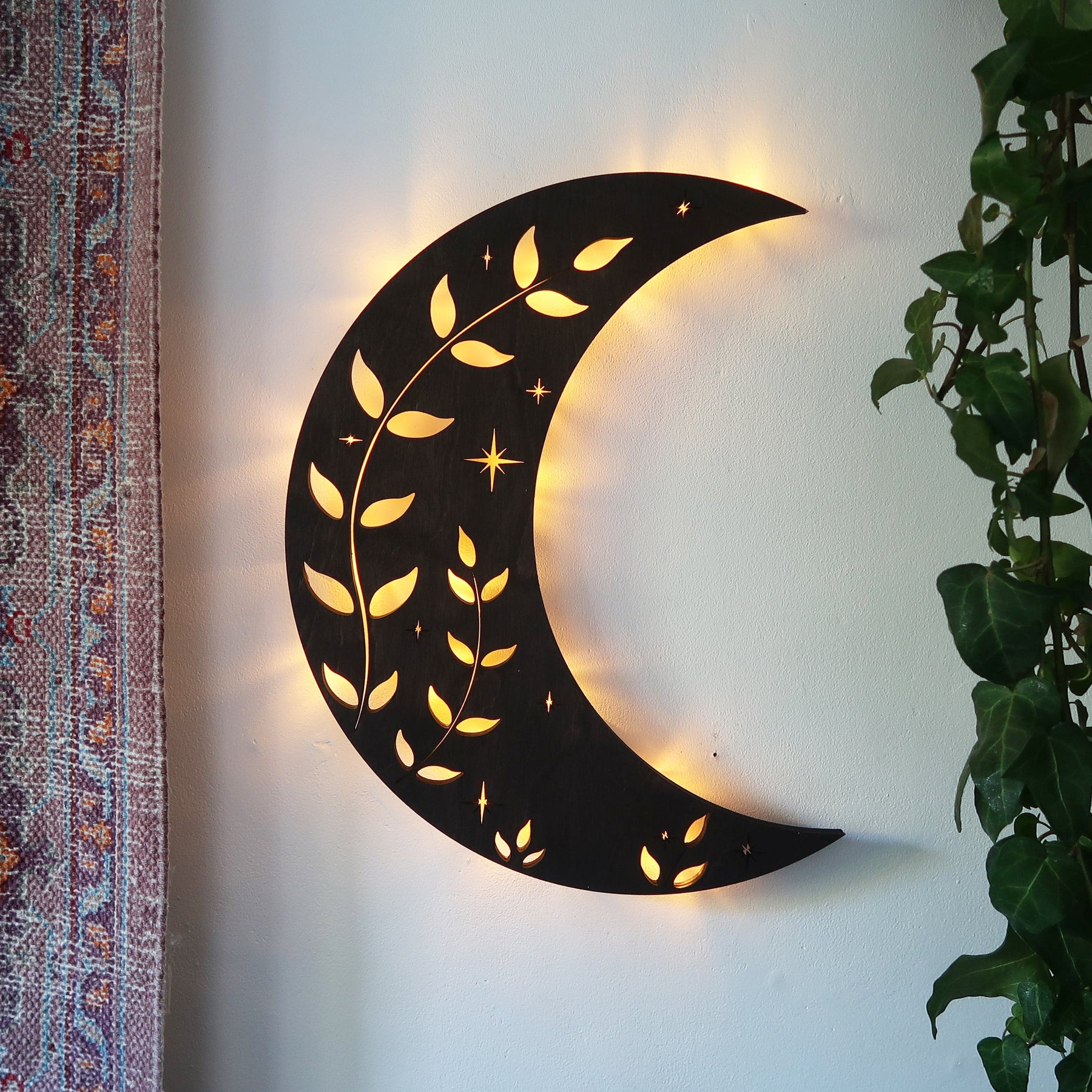 The ivy and star engravings connect earth and celestial energies, creating an ideal space for gentle lunar activation work.