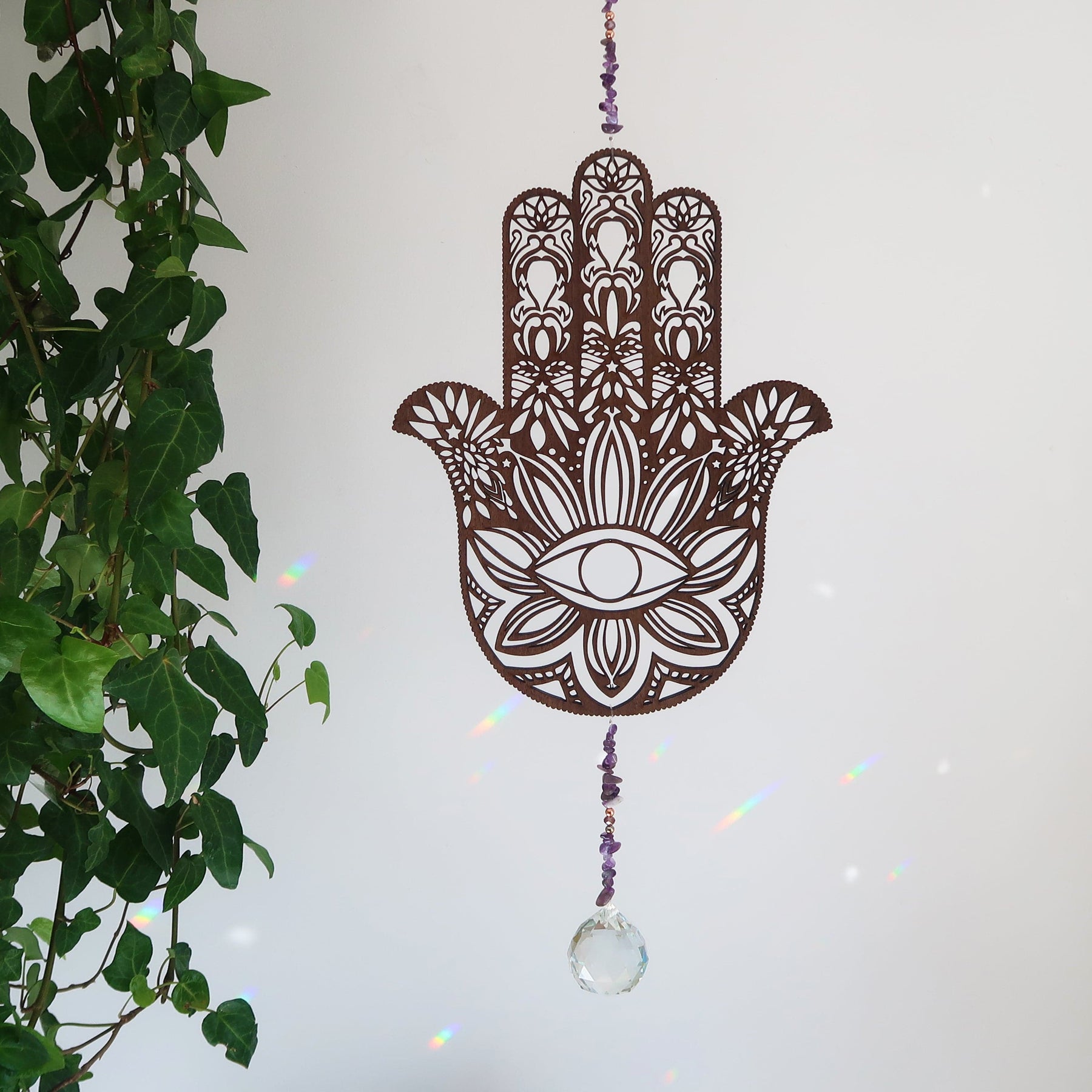 Our handcrafted Hamsa Hand Suncatcher continues this ancient tradition of protection.