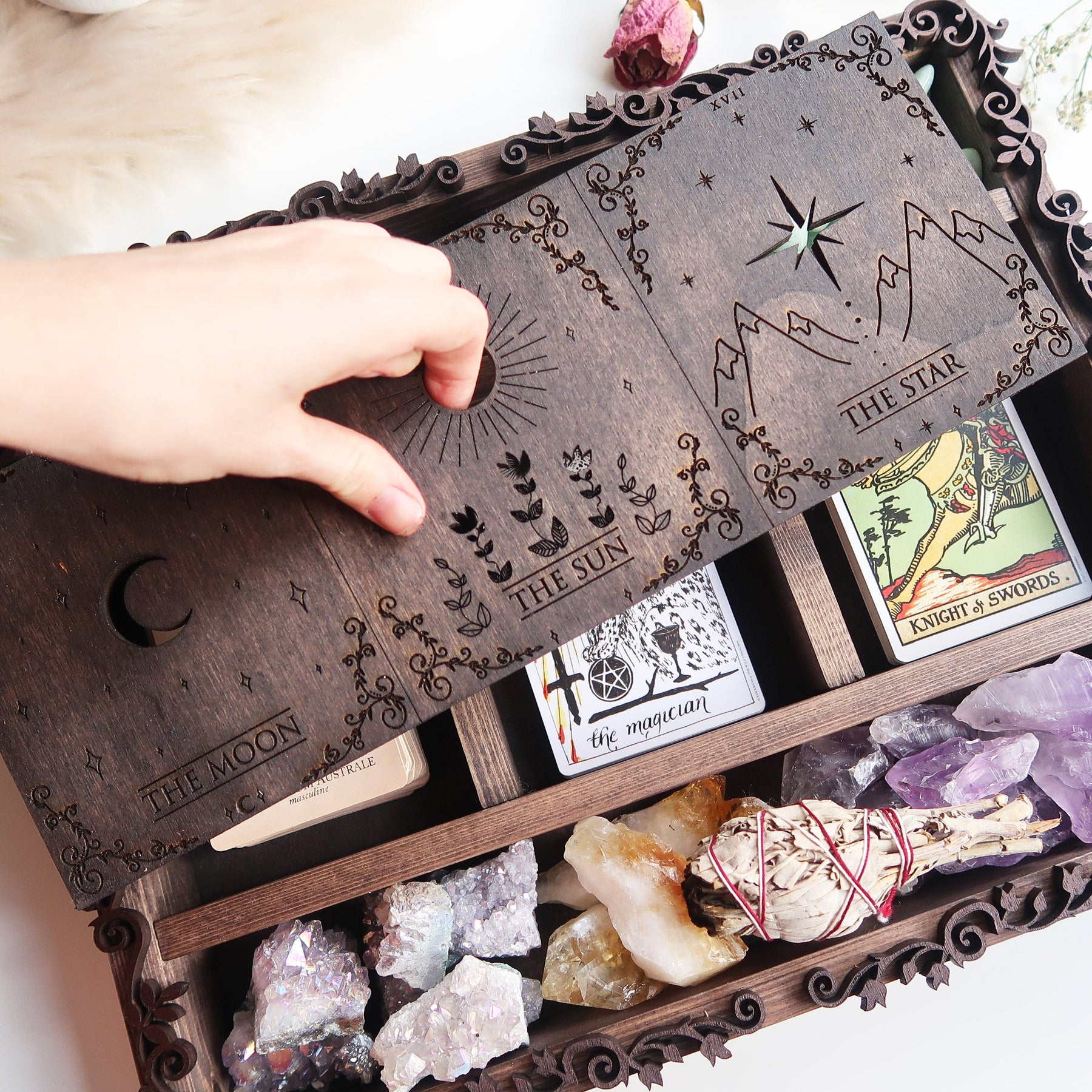 The solid pine construction with separate compartments allows me to keep my love-specific deck separate from others, preserving its special energy.