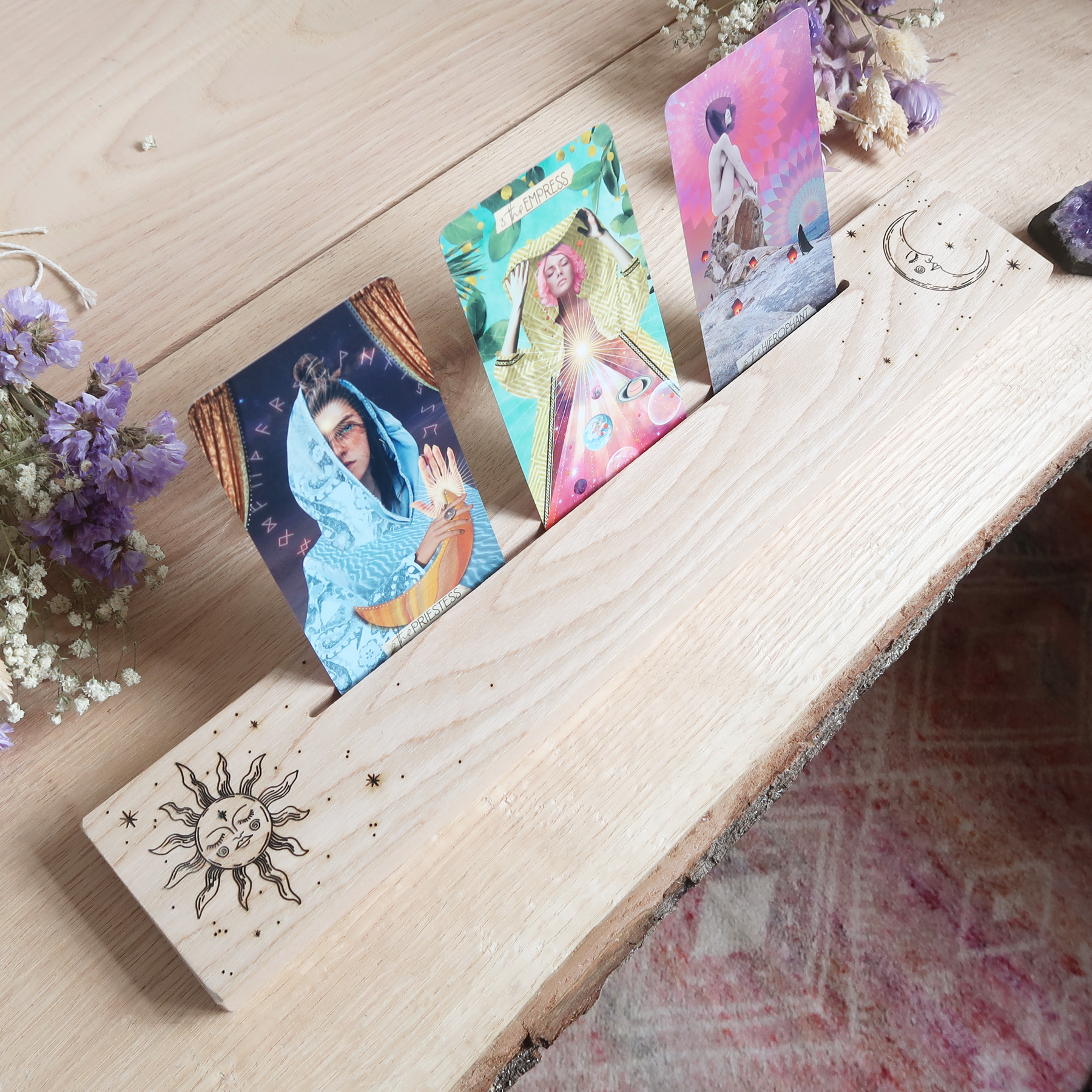 Our Oak Sun & Moon Altar Card Stand creates a beautiful centerpiece for your solstice altar.