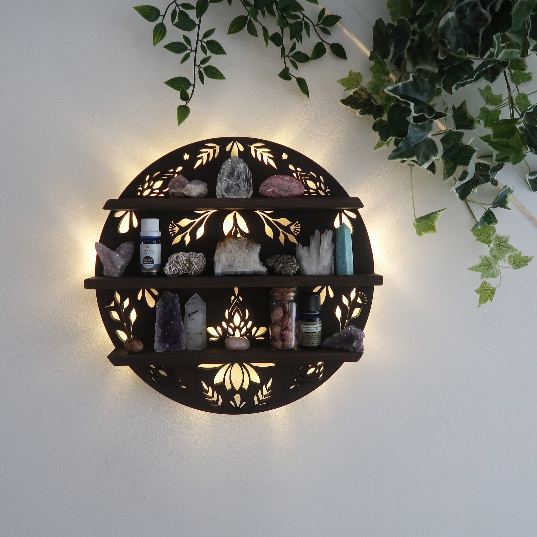 Our full moon shelves embrace the energy of the complete lunar cycle, offering circular displays that radiate wholeness and completion.